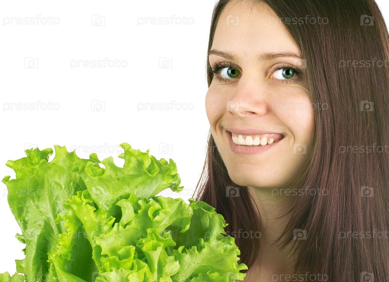 Портрет красивой молодой женщины с сырой едой