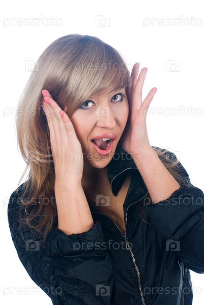 Портрет удивленной блондинки крупным планом