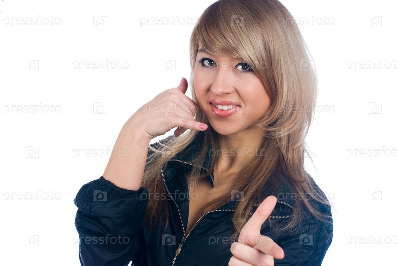 Блондинка изображает телефонный разговор