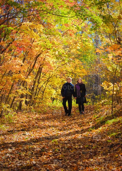 Красивые мальчик с девочкой в осеннем лесу