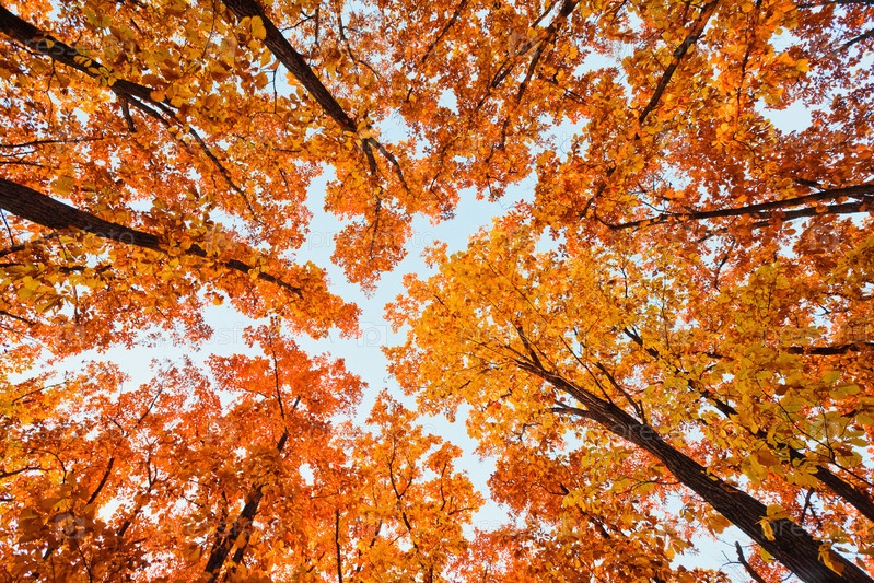 Яркая листва на дубовых деревьях