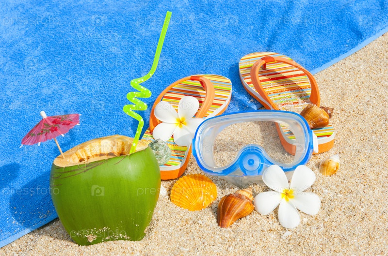 Атрибуты отдыхающего на тропическом пляже