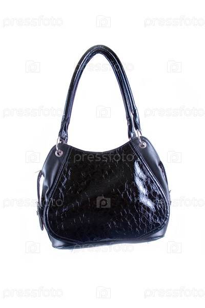 Черная женская сумка на белом фоне