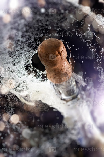 Вылетающая пробка из бутылки шампанского