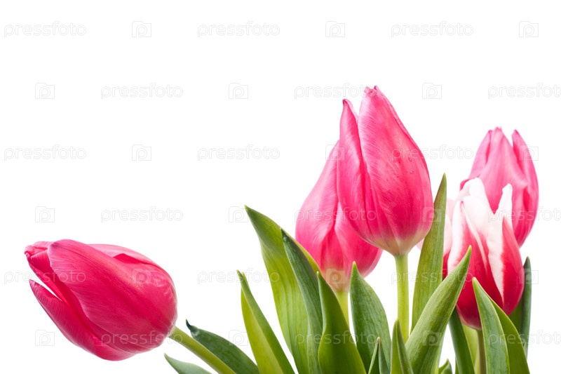 Свежие яркие тюльпаны, изолированные на белом фоне
