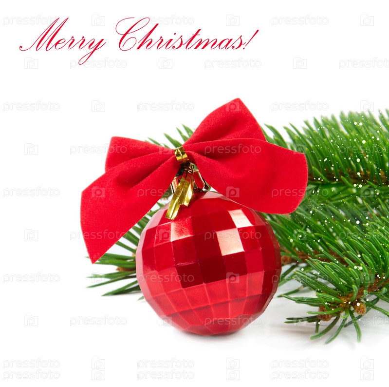 Красный Рождественский шар на белом фоне