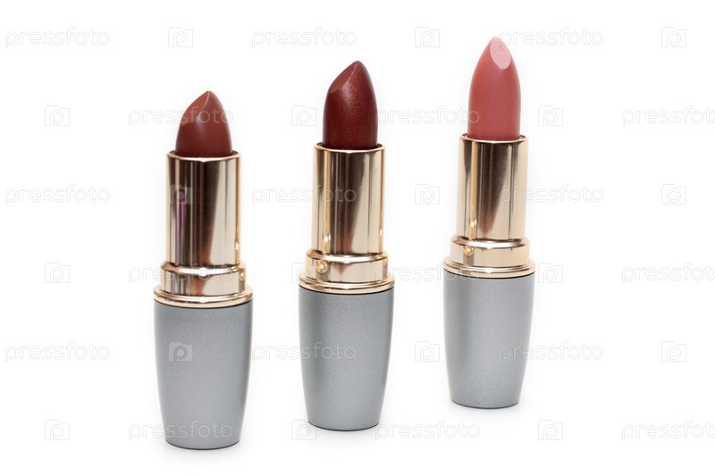 Три женских помады, трубки изолированные на белом фоне