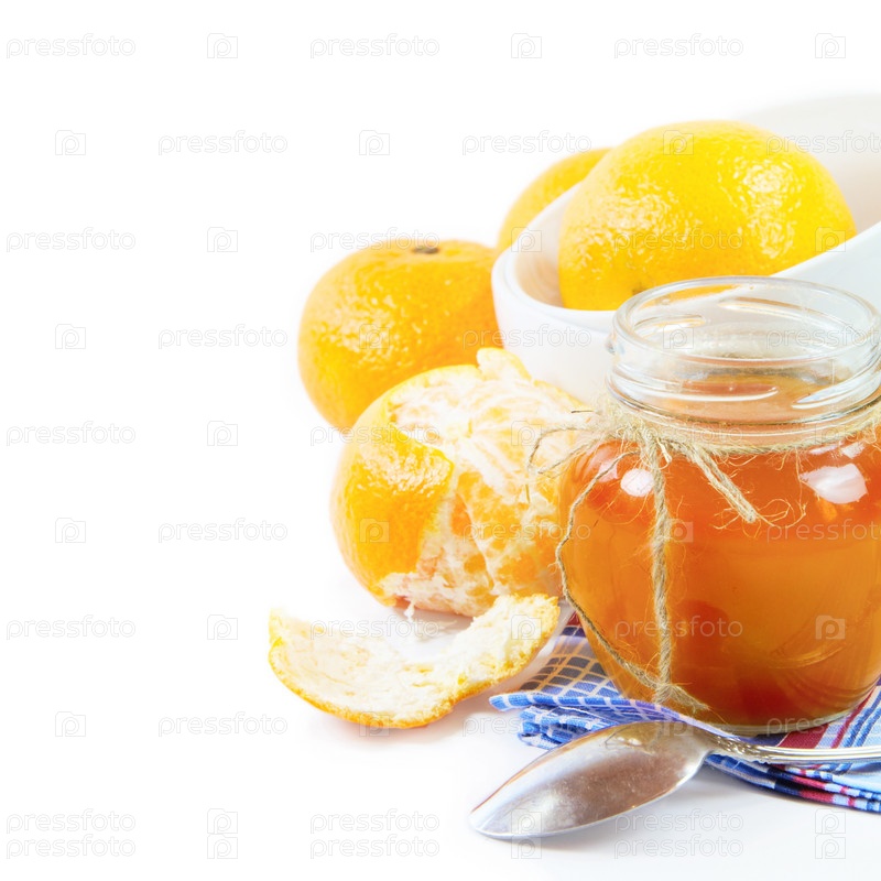Апельсиновый джем натюрморт на белом фоне
