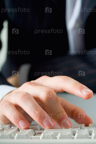 Близкий план мужских пальцев, печатающих на клавиатуре