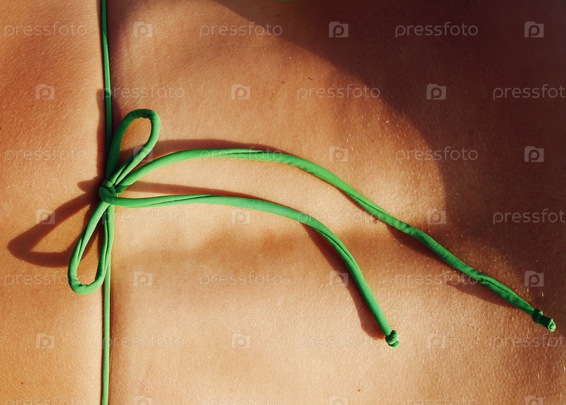 Спина женщины в купальнике, привязанной к луку