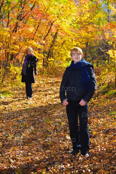 Парень с девушкой в осеннем лесу