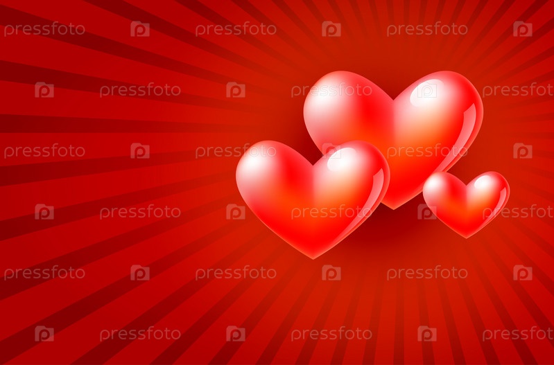 Иллюстрация трех сердец на красном фоне