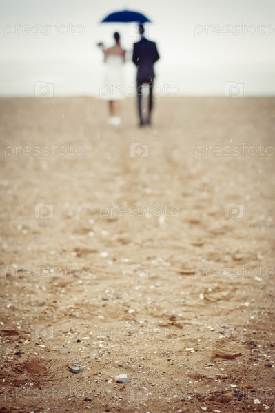 Пара под зонтом на пляже