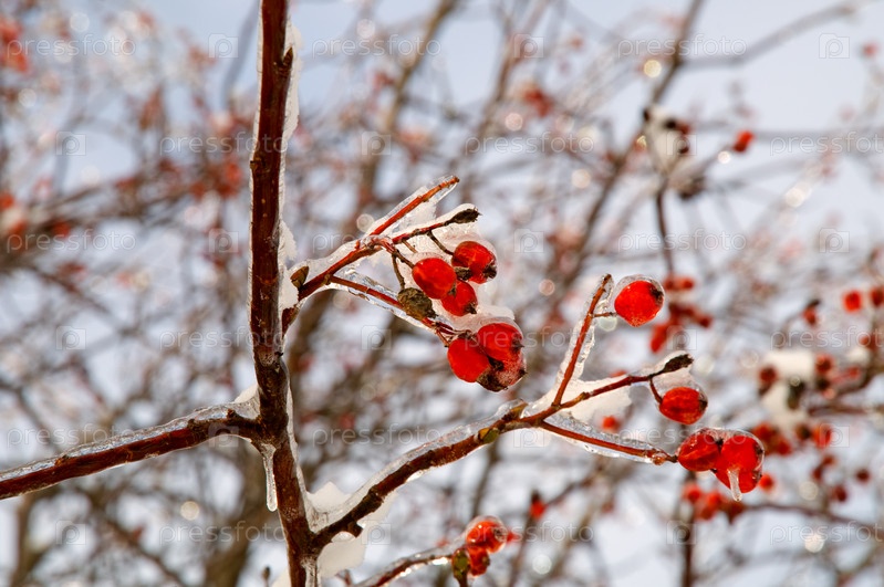 Ветка рябины в снегу
