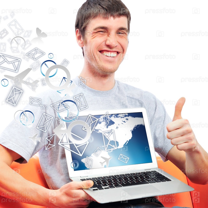 Портрет улыбчивого юноши с ноутбуком