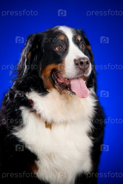 Красивый бернский зенненхунд на синем фоне