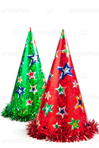 Блестящие праздничные колпаки на белом фоне