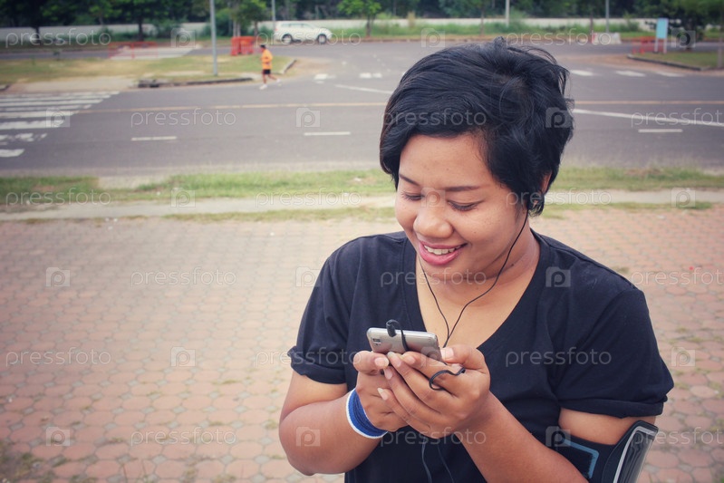 Азиатская женщина со смартфоном