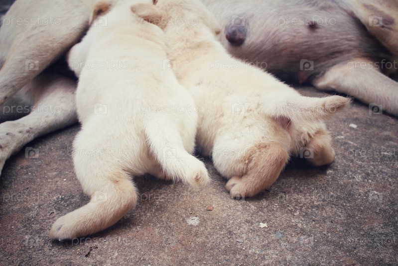 Кормящая мама и щенки Лабрадор