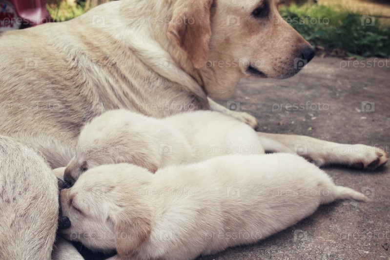 Кормящая мама и щенки
