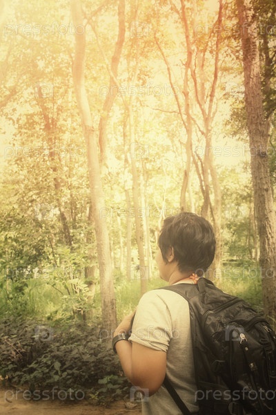 Женщина турист в лесу