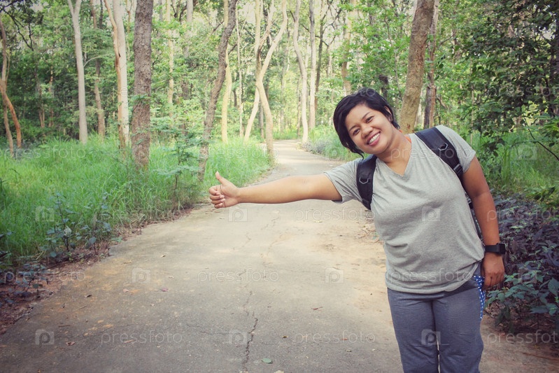 Женщина турист в лесу