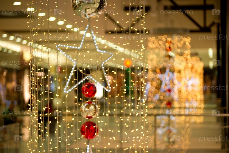 Светящиеся рождественские огни с шарами и звездой