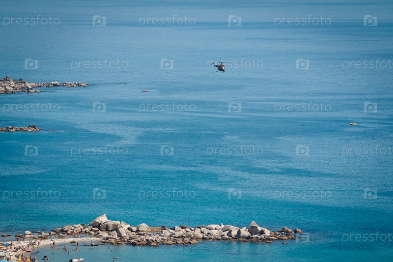 Вертолет летит над морем