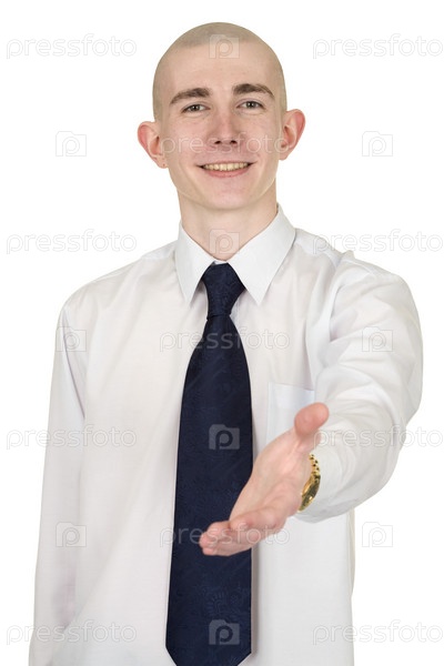 Бизнесмен с открытой рукой, готовый заключить сделку
