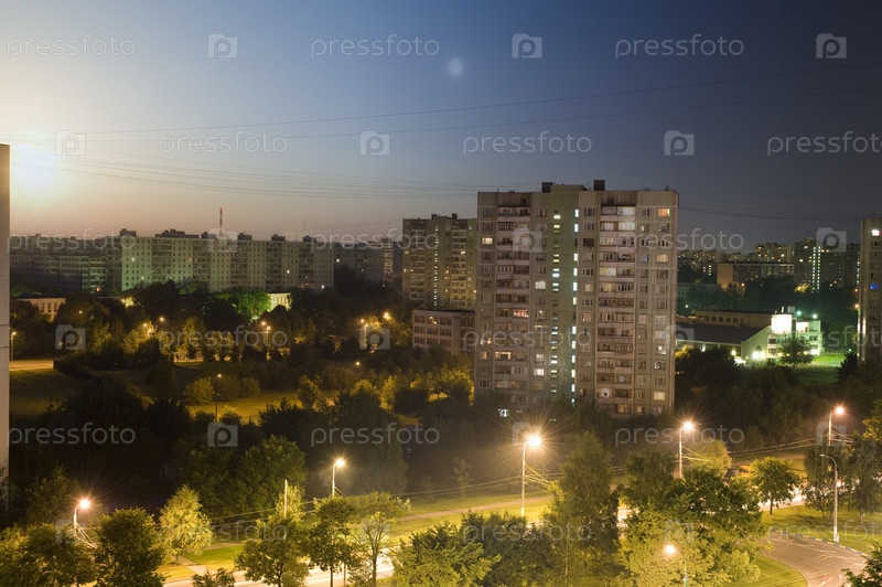 Городской пейзаж - панельное жилищное строительство днем и ночью