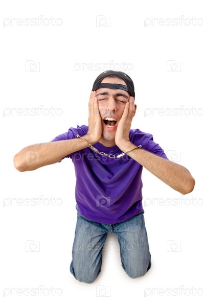 Портрет арестованного молодого человека, на белом фоне
