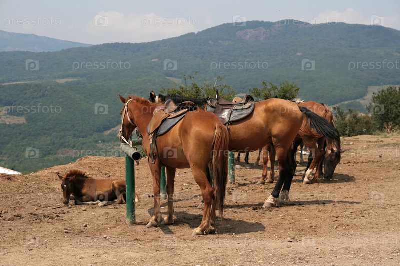Лошади на отдыхе в горах