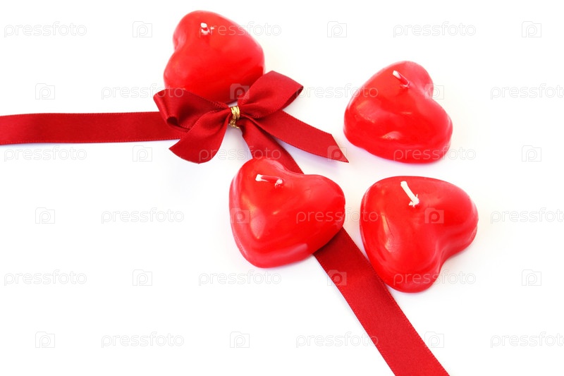 Свечи в форме сердца и лента