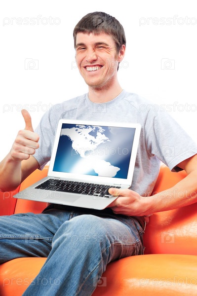 Мужчина с ноутбуком на диване