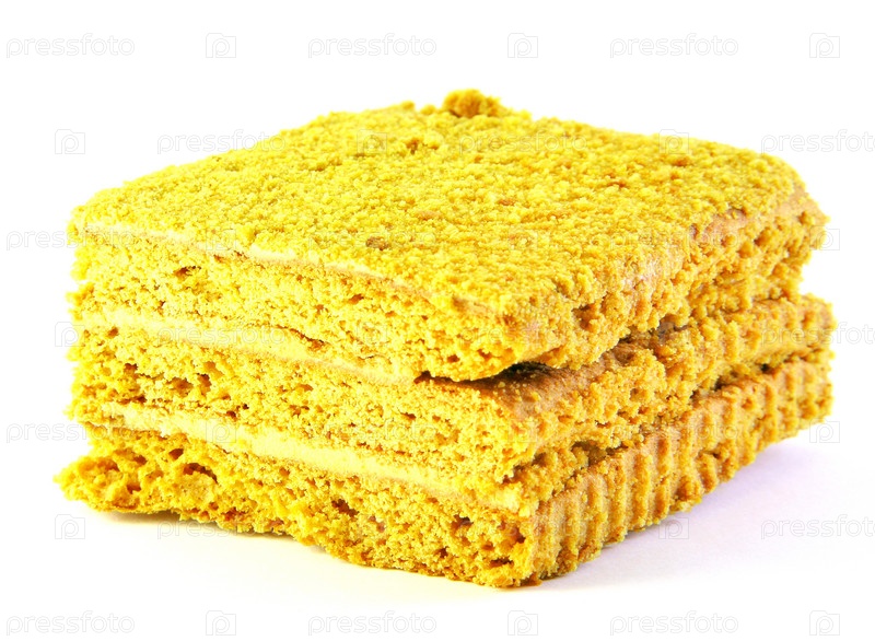 Кусок медового торта на белом фоне