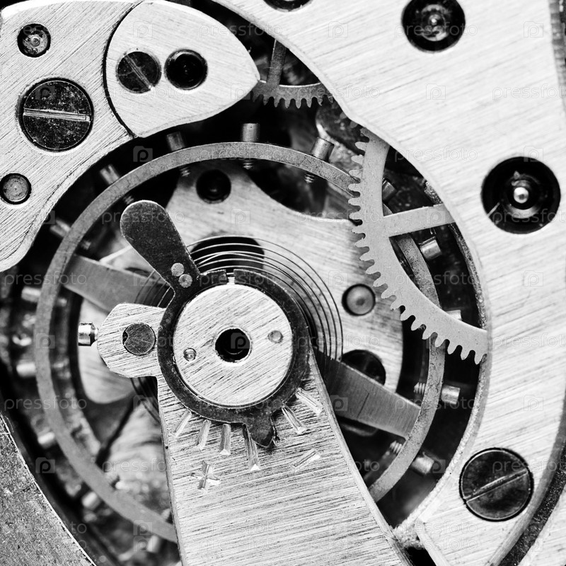 Заводной механизм крупным планом