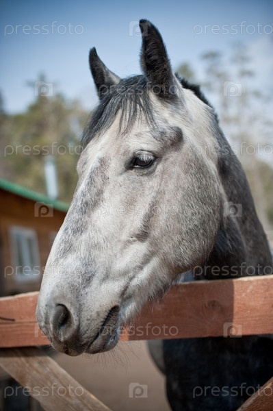 Серая лошадь крупным планом