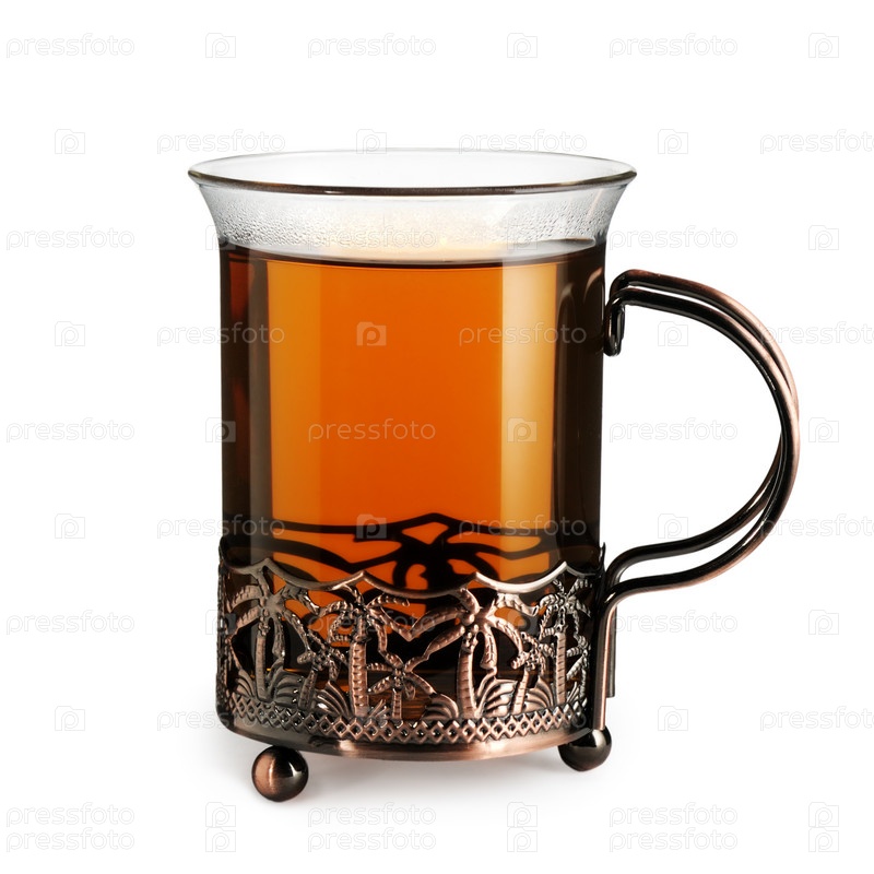 Стакан чая, на белом фоне