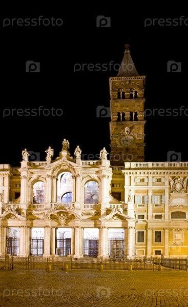 Италия. Рим. Базилика Санта-Мария Маджоре в ночном освещении