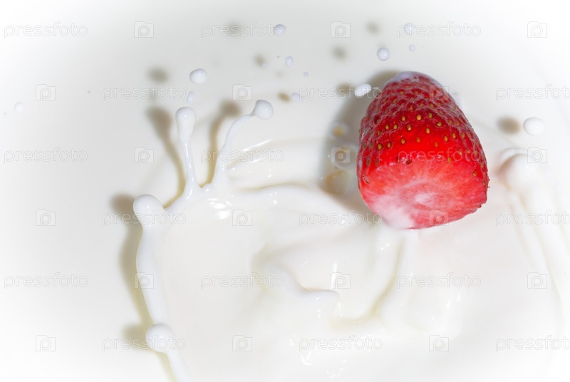 Клубника, падающая в молоко