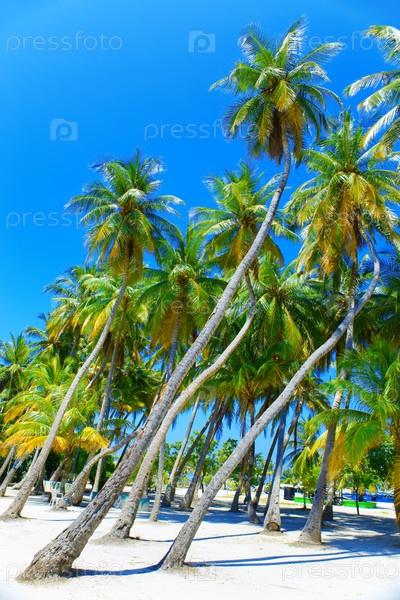Пальмы на песчаном пляже. Мальдивские острова