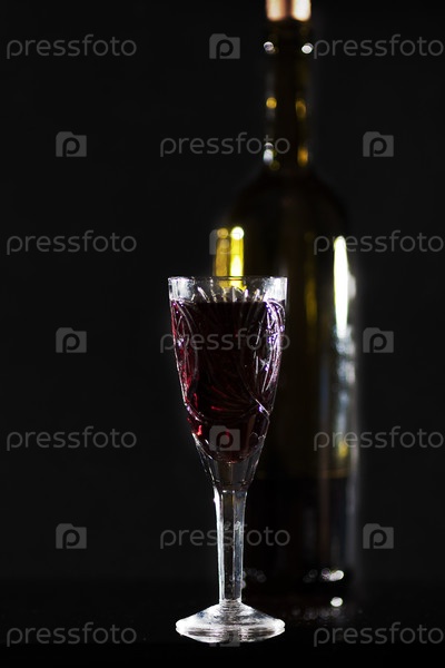 Бокал красного вина и бутылка