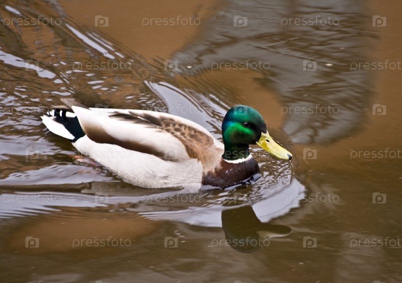 Утка в воде на переднем плане
