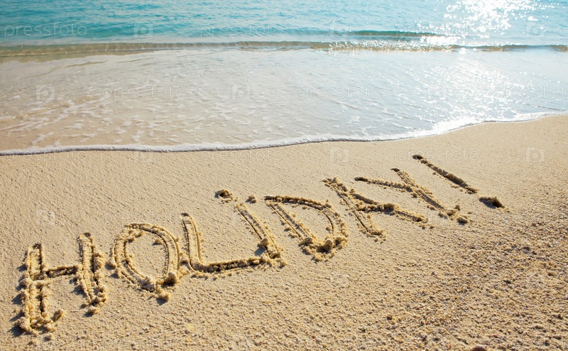Надпись "выходные" по-английски на песке