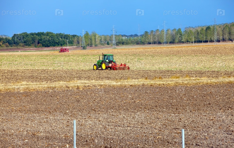 Трактор работает в поле