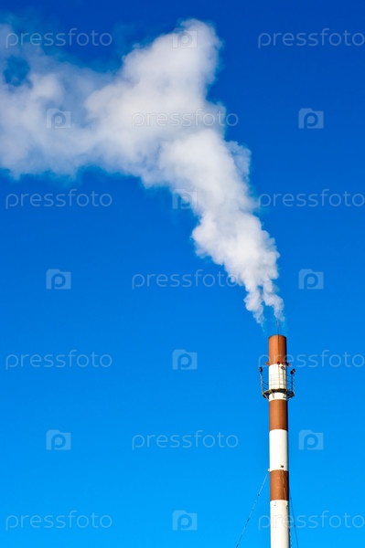 Фабричная труба и хмурое облако загрязнения на фоне голубого неба