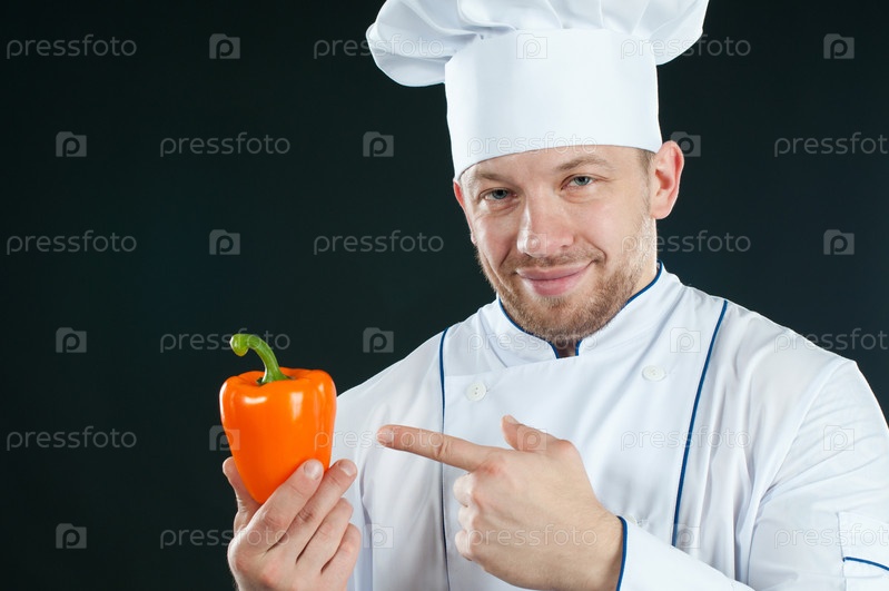 Улыбающийся шеф-повар с болгарским перцем в руках