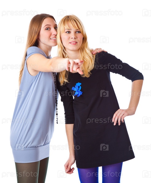 Две смеющиеся девочки-подростки, изолированные на белом фоне