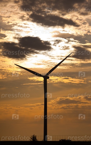 Силуэт ветряных турбин на фоне заката