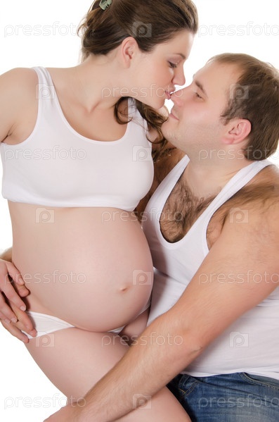 Мужчина и беременная женщина на белом фоне